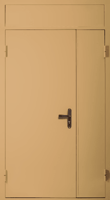 Если ширина и высота проема нестандартные, удобнее всего установить полуторные технические двери с глухим полотном и фрамугой. Статичная створка оснащена петлями и вертикальными штырями, что позволяет открывать ее в случае необходимости.